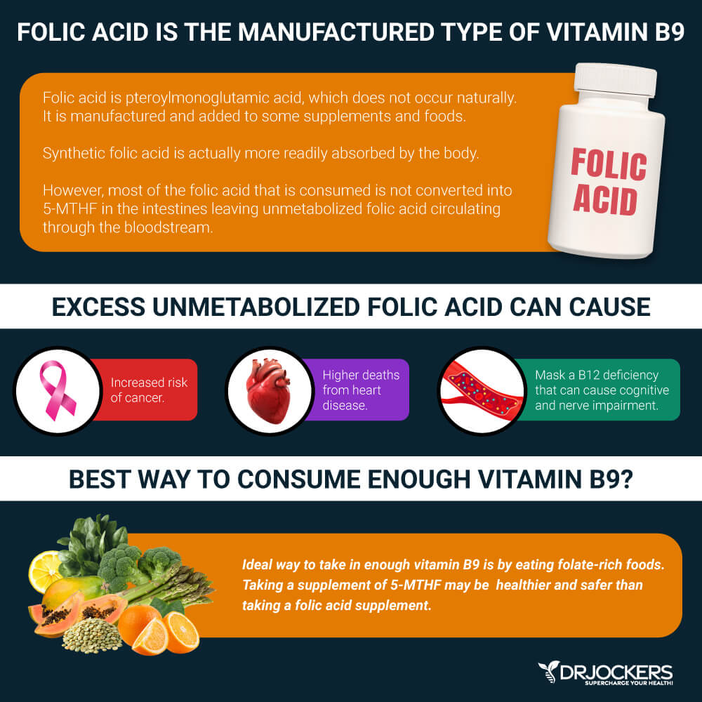 Avoiding the risks that come from a diet high in folic acid is as simple as eating high quality foods. Unlike elevated amounts of folic acid creating deleterious health consequences, folate actually can protect you against health complications.