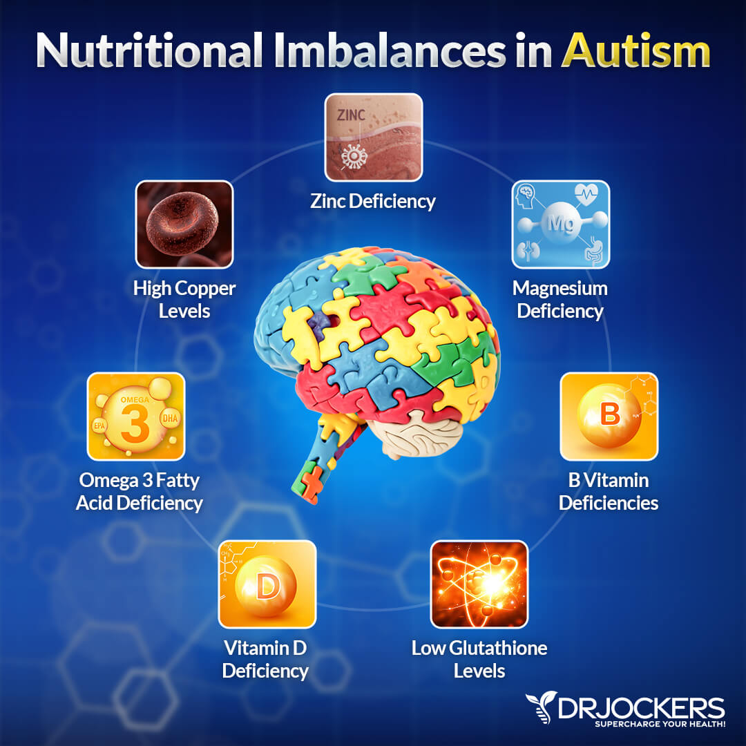 Clinical studies have found that an increase in copper and a decrease in zinc are directly correlated to the severity of symptoms associated with autism. A reduction in GABA and glutamate as noted in individuals with abnormal immune responses is believed to aggravate symptoms of autism and cause changes across the central nervous system.