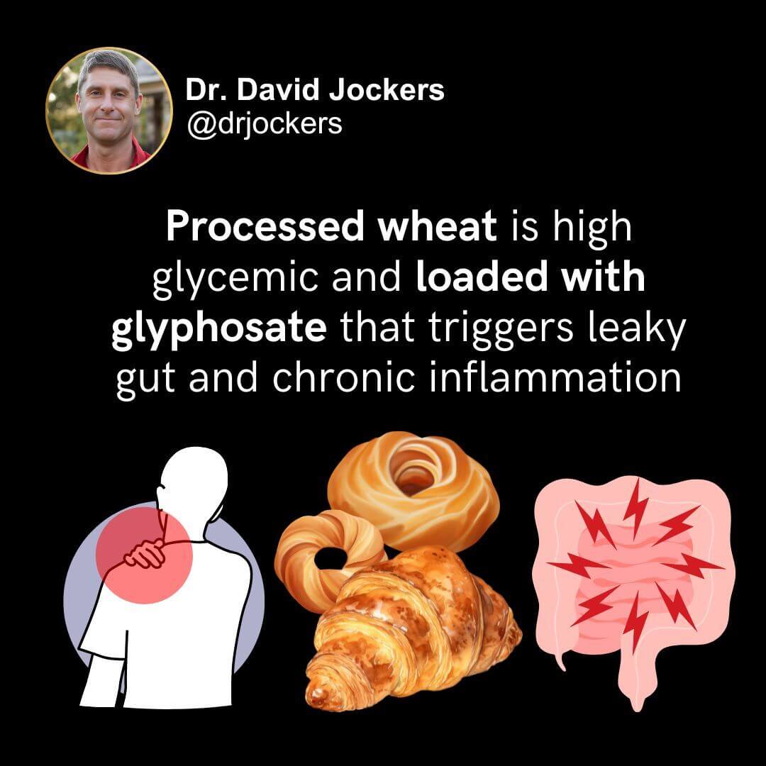 Did you know that consuming non-organic wheat can expose you to harmful chemicals like glyphosate? Dr. Jockers explains how this herbicide damages your gut microbiome and mitochondria, leading to intestinal permeability and inflammation.