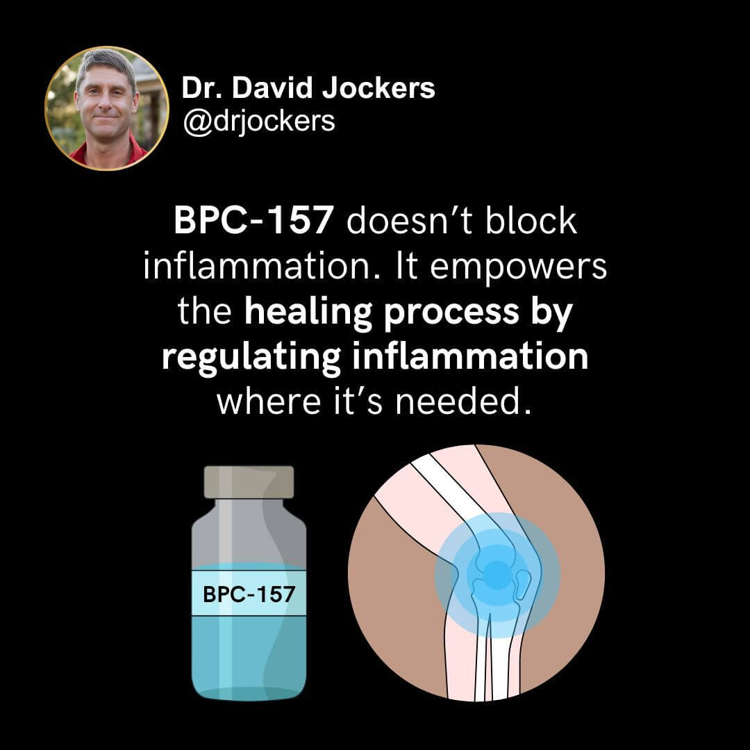 Unlike common anti-inflammatories that shut down the healing process, BPC-157 works with your body’s natural repair systems.