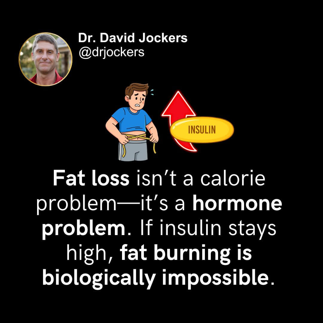This conversation flips the traditional fat-loss narrative on its head. I will explain why fat loss is controlled by hormones, not calories, and how elevated insulin keeps the body locked in fat-storage mode.