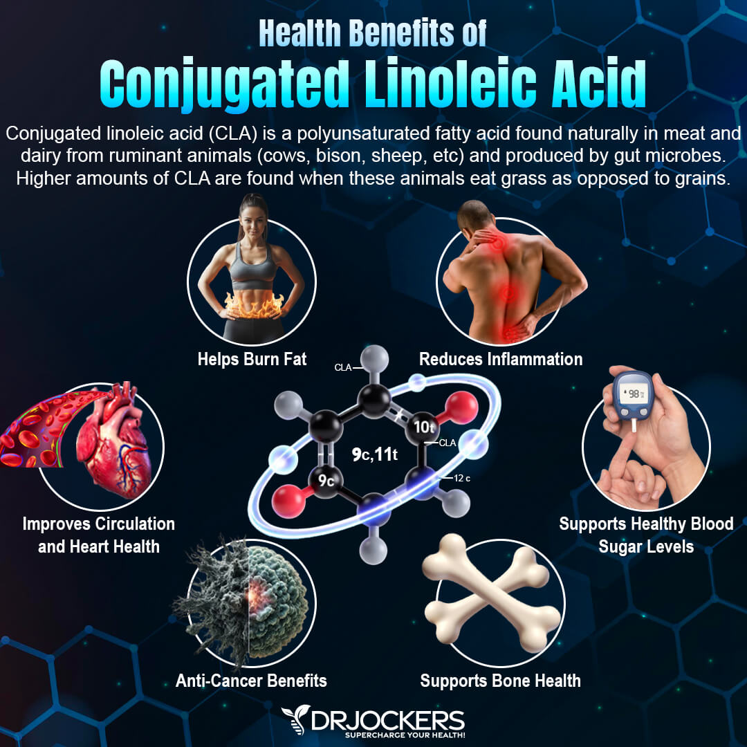 My favorite natural foods that are rich in CLA include grass-fed butter/ghee, pasture-raised eggs, grass-fed cheese, and grass-fed beef and/or bison. Be sure to use these great foods on a regular basis.