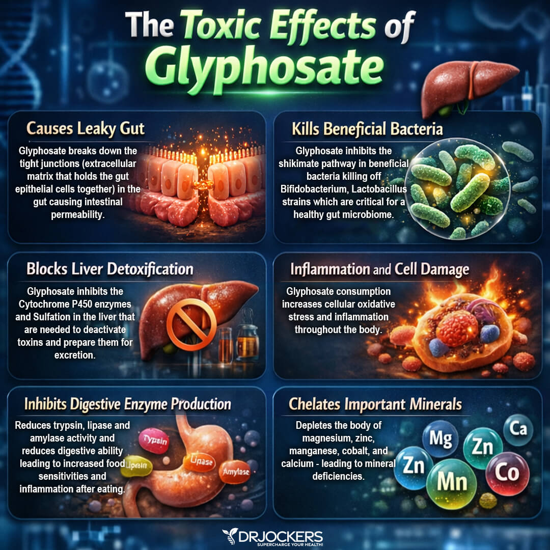 Glyphosate is the world’s most commonly produced chemical, which is the primary toxin in Roundup and other herbicides. It is a carcinogenic chemical that may be linked to a number of chronic health conditions, including cancer, gut flora imbalance, Alzheimer’s disease, Parkinson’s disease, mental health issues, such as depression, anxiety, and autism, chronic kidney disease, reproductive issues, and transgenerational problems.