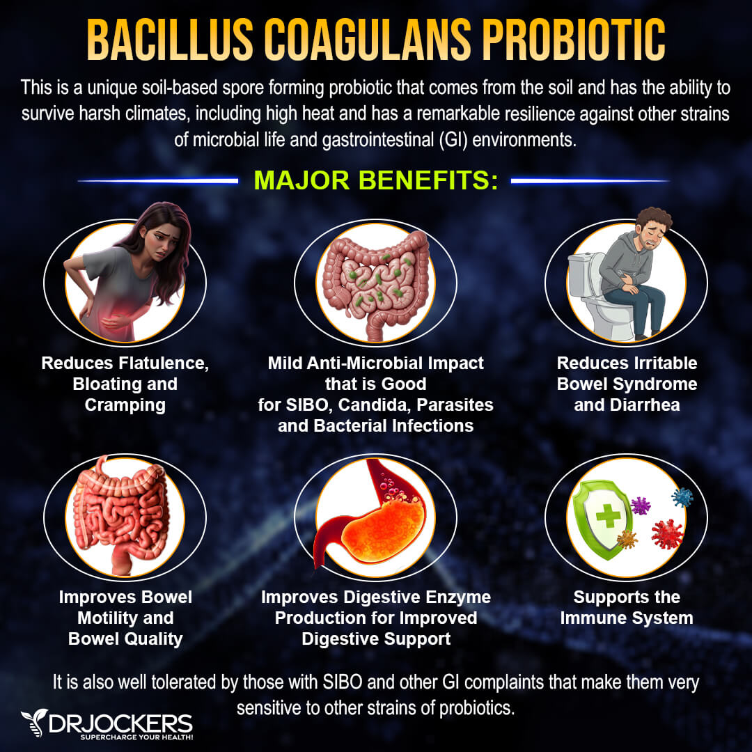 Spore-forming probiotics are a promising alternative for people affected by recurring gut problems. In fact, treatment of small intestinal bacterial overgrowth (SIBO) with spore probiotics was found to have the same effects as antibiotics (10). Bacillus-based probiotics reinforce intestinal barrier integrity and reduce inflammation in the gut (11).