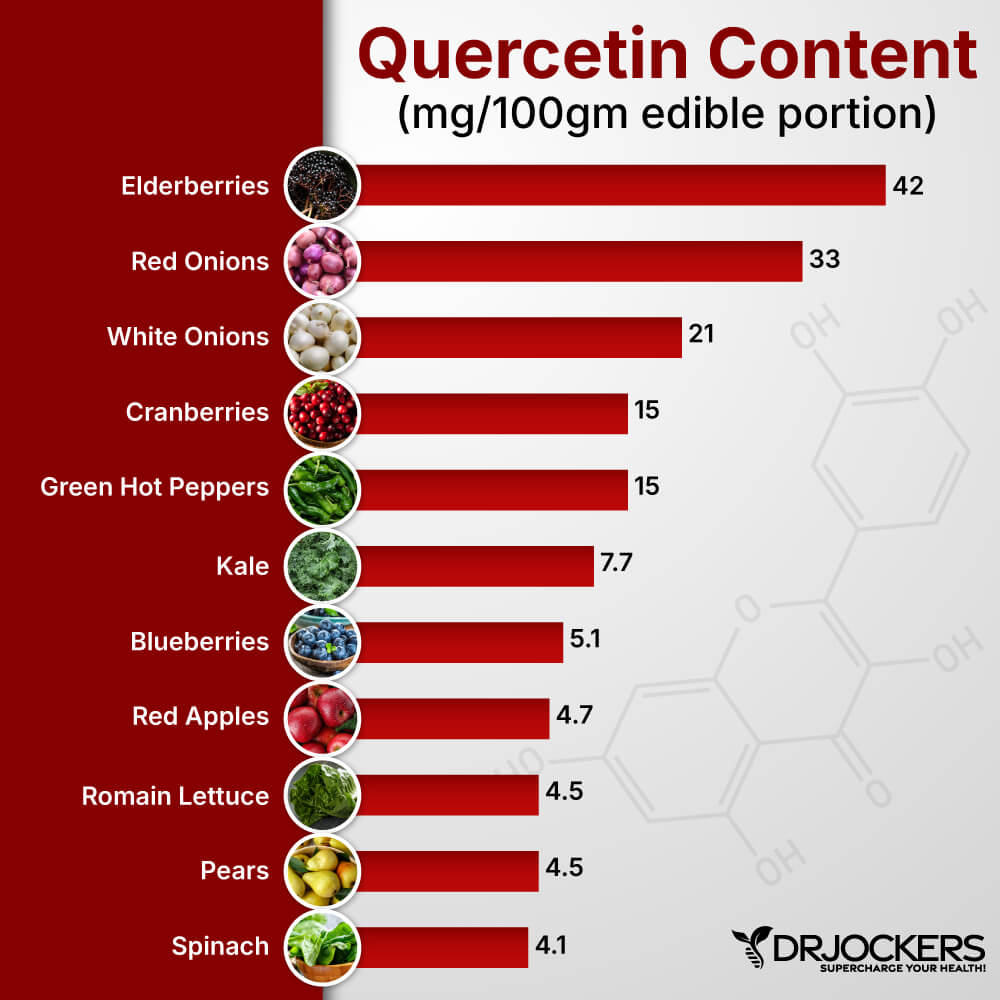 As a result of this low absorption rate, manufacturers’ recommendations on supplements are about 400-1,200 mg/day depending on the health concerns in an individual may be aiming to treat (7). I also like combining quercetin with resveratrol for a powerful synergy and I personally use the Resveratrol Power here on a daily basis.